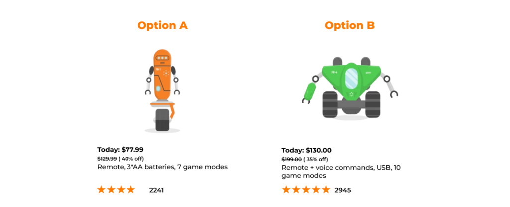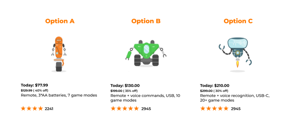 For e-shoppers, the choice between Options A and B essentially boils down to deciding if the extra features are worth the price difference. Once we introduce Option C, the nature of the decision changes: