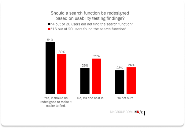 The simple change in framing had a significant impact on the results: the Group 1 participants were 31% more convinced that the search button needed a redesign.