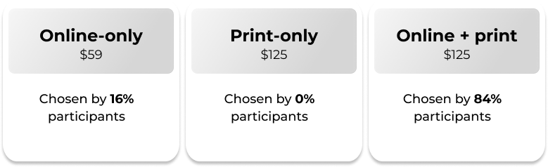 With the decoy removed, the online-plus-print option became less popular than the online-only subscription: